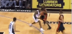 先来看一下他年轻时在勇士的一次过人。简直是把魔术主场当成了街球场来玩。