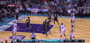 沃克在快攻中持球推进,对面三名防守球员,沃克用欧洲步轻松上篮得手。