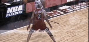 再来看两个祖师爷的镜头,先戏耍公牛,再调戏火箭。这两支球队在当时可都是一方霸主。