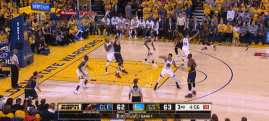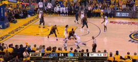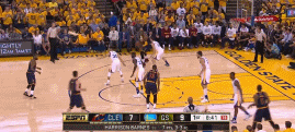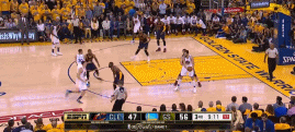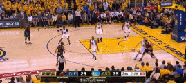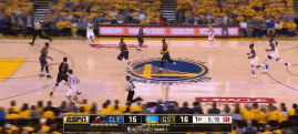 到这个时候,骑士的防守策略还是上半场那个,底线没人协防,詹姆斯跟着库里,根本没法补防,只能看着格林上空篮。
