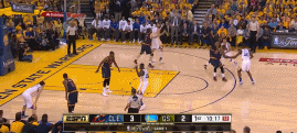 注意一个细节,詹姆斯一起跳的瞬间,库里就已经往底线勒夫的位置跑了,只要詹姆斯传底线,就立刻被断球。