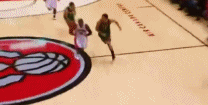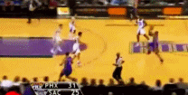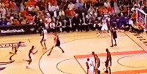 再接着,就是将裁判撞翻在地后的三分命中: