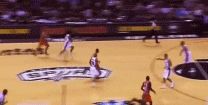 在快攻中面对吉诺比利的截抄,巴博萨一步过掉,然后,一马平川。