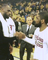 通过上图不难看到,终场哨声响起后,两位领袖走到了一起,先是互相握手,随后两人紧紧地抱在了一起,詹姆斯“重重”地拍着欧文的头,并耳语几句,仿佛在说:小伙子,干的漂亮!