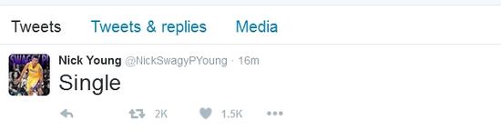 “单身!”NBA总决赛第七场比赛开始前半小时左右,尼克-杨更新了一条推特。