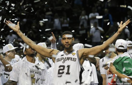 13、2014年总决赛4-1战胜热火完成复仇,邓肯首个总冠军和第五个总冠军相隔15年,是贾巴尔的17年之后两次夺冠距离最远的球员。