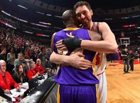 2007-2008赛季,保罗-加索尔空降洛杉矶,为科比带去了崛起的希望。在一起并肩作战7年,加索尔成了科比职业生涯关系最为融洽的一个队友。2013-2014赛季,科比因伤只打了6场比赛。苦苦支撑一个赛季之后,加索尔因为不满自己在队中的战术地位下降而选择加盟芝加哥公牛,科比像韦德一样对加索尔的决定表示全力支持。再相见时,两人已经从当初的冠军组合变成了两个老头子。加索尔抱着去抱大腿的心态在芝加哥成了大腿,而科比则守护着紫金王朝坍塌的废墟默默为尊严而战。一个拥抱之间,除了两人对彼此的怀念,更让球迷感到恍如隔世。