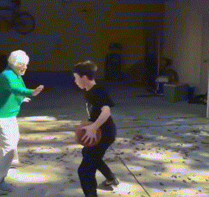 这是一组非常有趣的对决,从视频中可以看出孙子大概十几岁,面对七十岁左右的祖母毫不留情,一个crossover直接将祖母晃到,简直不忍直视,看哭了我们所有人。