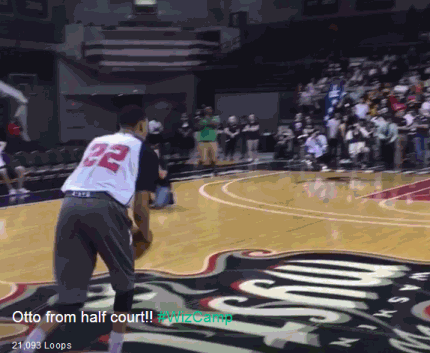 波特会玩!新浪体育讯 北京时间10月2日消息,因为斯蒂芬-库里的疯狂表现,篮球世界正兴起一波远投热潮,在今天的训练课结束前,华盛顿奇才队的球员们,也来了一次中圈远投大赛。