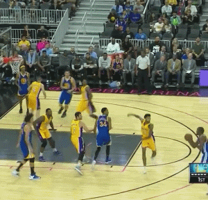 在昨天进行的勇士和湖人的一场季前赛中,杜兰特在首节临近尾声时在三分线外得球。只见这位7届全明星左右运了一下球,将防守他的湖人新秀布兰顿-英格拉姆晃得失去平衡后,跃起投出三分。