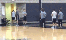 从视频中我们可以看到,邓肯先是回头看了几眼在一旁练习投篮的拉马库斯-阿尔德里奇,随后回过身和一旁的一名工作人员交谈了起来。