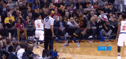 康特尼-李底线突破詹姆斯的防守,遭遇后者的封盖!这球势大力沉坎比扣篮!