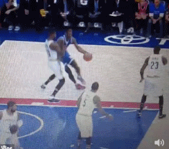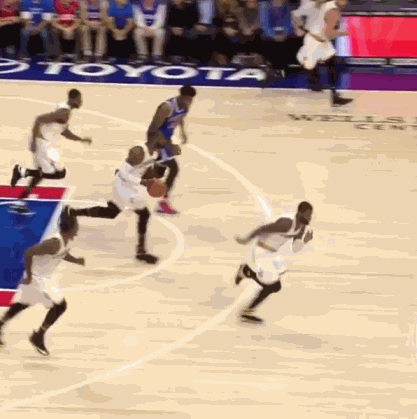 作为奥拉朱旺的传人,恩比德在开场后不久的一次低位单打时使出了当年大梦的经典脚步,他先是做了一个右手佯装上篮的动作,随后收球转身,并完成一个勾手投篮。整个进攻动作非常流畅,顺带戏耍了一番骑士首发中锋特里斯坦-汤普森。