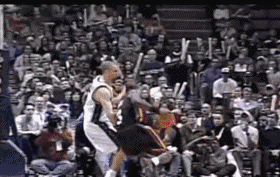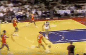 不过论起盖帽,毕竟还是大个球员在行一些。克里斯-韦伯在新秀赛季的时候就曾经上演过徒手抓帽,落地后就手发动长传快攻。虽然这只是他的第一个赛季,但他的身体素质和战术意识已经显露无遗,初具四大前锋之端倪。