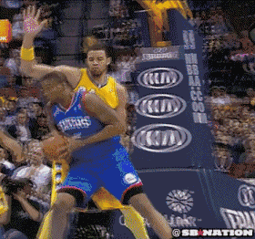 暴力美学的代言人肯扬-马丁也是抓帽的好手,不过似乎技术所限,他的抓帽都是双手完成的。没关系啊,谁让咱跳得高呢。