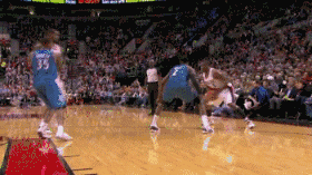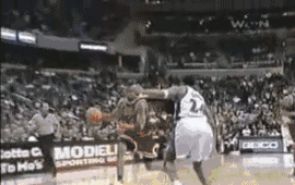 想必许多加内特的球迷都对他选秀试训的故事耳熟能详。当时所有在场的总经理都被他连摸十下篮板上沿的惊人弹跳所折服。没错,惊人的跳跃力也令KG化身为一个抓帽高手。虽然佩贾已经意识到KG的弹跳不容小觑,刻意使出了抛投,但还是逃不过“狼王”的五指山呐。