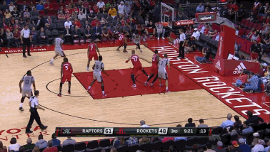 在首节5分54秒,卡佩拉就先“过了一把瘾”,3名猛龙球员将注意力放在詹姆斯-哈登身上,却忽略了从旁掠过的卡佩拉,后者接哈登妙传,双手空接爆扣。