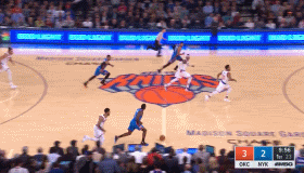 最后一节打到3分26秒,安东尼两罚全中,把比分追到101-104,只剩3分分差。但在那之后,威少马上回敬两分,第二节被他激活的坎特也连续得分,雷霆用一波6-0杀死比赛最后一点悬念,威少也带来一场胜利,昂首离开麦迪逊广场花园。