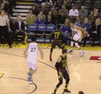 库里在一次与队友挡拆后,脚下打滑,但奈何萌神艺高人胆大,直接跪地运球后起身跳投命中,技术和球感一流,人球结合堪称完美。