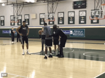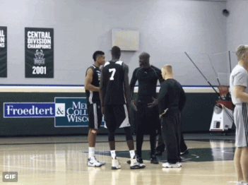今天,加内特突然又现身雄鹿队的训练场,从记者拍到的照片来看,KG在训练场上对雄鹿队的年轻核心字母哥和新秀中锋索恩-马克面授机宜,而雄鹿队主帅杰森-基德则在一旁的篮架下面看着。