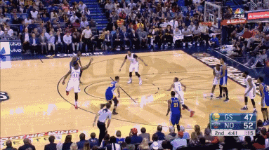 新浪体育讯 北京时间12月14日,勇士队客场挑战鹈鹕队,库里脑后长眼助攻格林三分命中。