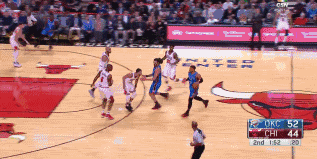 新浪体育讯 北京时间1月10日,雷霆队对阵公牛队,威少突破打成2+1。