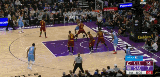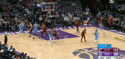其中最能反映出他球场视野和无私球风的一球发生在首节比赛进行到6分02秒时,当时他在球场左侧低位要球单打勒夫,他先是用球向后压了一下,詹姆斯马上收缩包夹,而负责防守埋伏在弱侧底角科里森的香波特,只能做出相应的轮转,帮助詹姆斯照顾处于右侧45度角的盖伊。