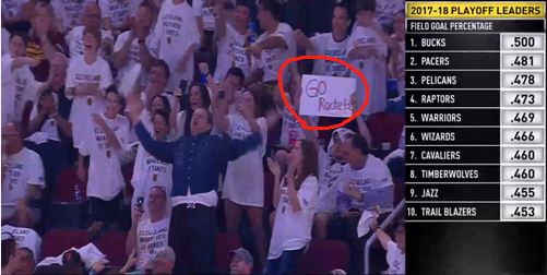 但是就在这样的比赛中,也有人调戏的,这么受关注的一场比赛中有球迷在场边举出了一个加油标语,上面写着“go rocekts go!”为火箭加油,这么调戏的球迷能在这样的比赛中坚持,实属不易。