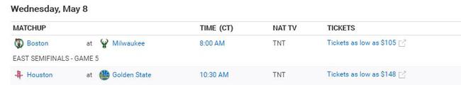 北京时间5月5日消息,在休斯顿火箭与金州勇士的季后赛系列赛第三场比赛前,ESPN和雅虎竟然都给出了第五场的时间安排表,这在以往的季后赛中都是几乎没有出现过的。
