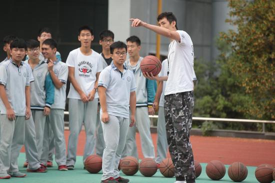 1、肯帝亚出席校园篮球训练营 指导球员基本功训练