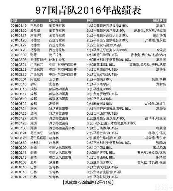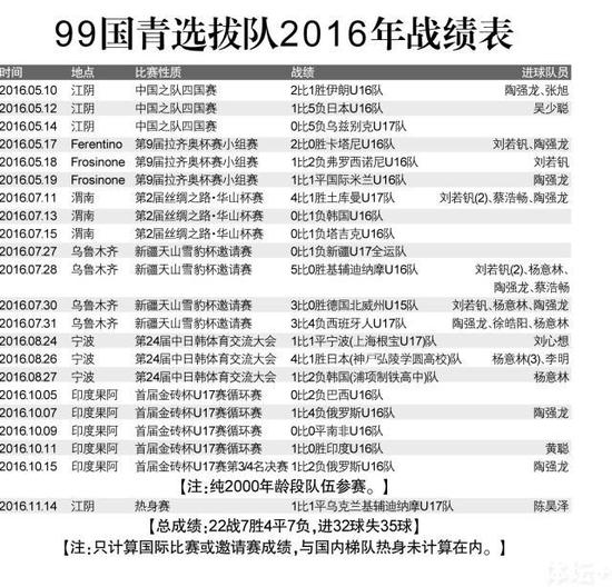 不过,除了97国青队未能很好地完成今年巴林亚青赛任务之外,就中国足协而言,其实2016年作为机制转换、体制改革的第一年,还是完成了最重要的一项工作,就是完善了中国男足各级国字号队伍的序列,实现了早组队、早选拔的目标,应该说是取得了相当大的成效。甚至可以说,这比竞赛成绩的好坏本身更为重要、也更为关键。