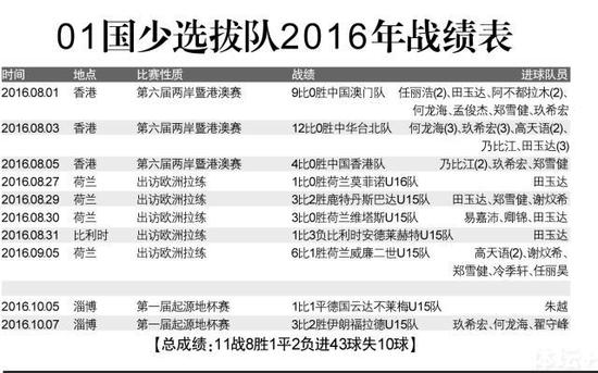 在前面所提到的三支队伍基础上,由于2000年龄段队伍没有常设,在经费允许的情况下,足协青少部还特意组建了2001年龄段U15国少选拔队,由这个年龄段的全国冠军、山东鲁能队的主教练于远伟兼任主教练,今年先后组织了三次集训,除了参加一年一度的两岸四地足球赛之外,还安排赴荷兰进行了为期13天的拉练集训,并在国庆节期间参加了在淄博进行的首届起源地杯赛。这个年龄段的队伍是着眼于2019年亚青预选赛的任务,由于早组队、早建队,而且安排国际比赛与交流,这个年龄段中出色的青少年球员提高效果明显。