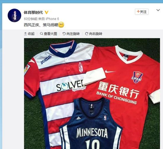 蒋立章参观俱乐部新浪体育讯 7月26日,西甲球队老板以及NBA球队森林狼队股东,中国商人蒋立章今天在微博上晒出一张照片,里面有三件球衣,除了格拉纳达和森林狼这两支他所持股和控股的球队之外,另外一件则是中超球队重庆力帆,这似乎预示着之前盛传的蒋立章入主力帆已经在变成现实。