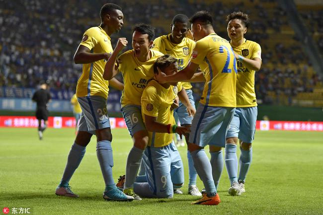 广州富力:(5-3-2)1-程月磊;20-唐淼、18-弋腾、5-奥特森、36-黄政宇、11-姜至鹏;4-张功、35-李提香、23-卢琳;10-雷纳迪尼奥、7-扎哈维