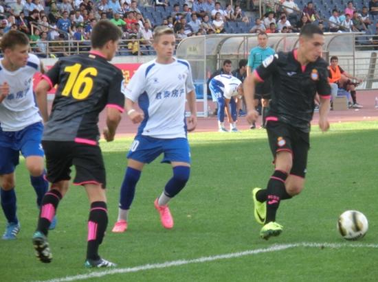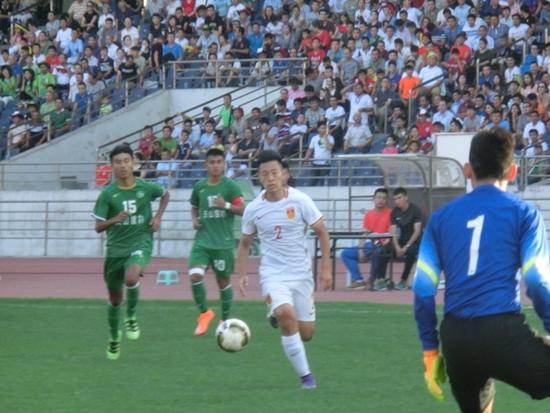 比赛瞬间新浪体育讯 7月27日18点,2016“天山雪豹”杯新疆丝绸之路国际青年邀请赛第二日的比赛正式打响,因飞机延误而匆匆赶往乌鲁木齐的德国北威州U17队终于得到宝贵的休息机会,他们将在看台上观摩其他四队的比赛。而首轮轮空的中国国家U17青年队正式登场,他们的对手是昨日力克西班牙人队的新疆U17,最终新疆队凭借吾拉木艾力的进球,1:0险胜国青队。另外一场比赛则是由西班牙人U17青年队对阵10人应战的基辅迪纳摩U17青年队,最终比分为2:0。