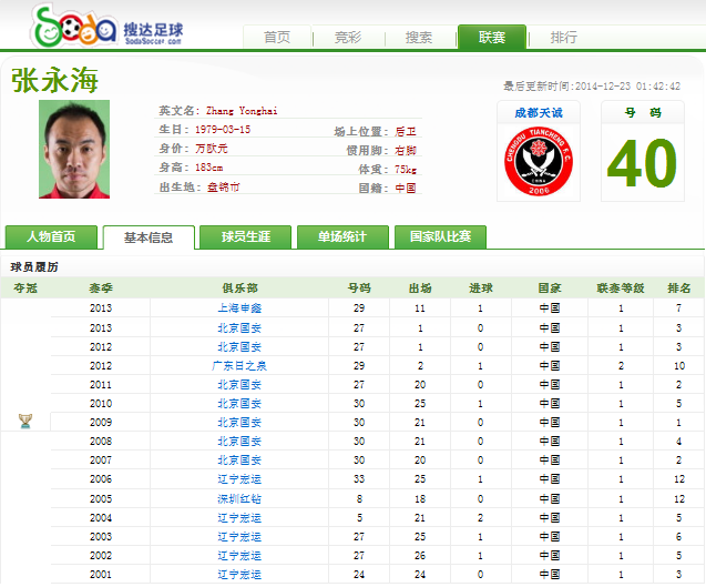 年轻时的张永海司职中后卫,身体强壮、作风硬朗,头球能力强,巅峰时期还一度坐稳了国家队主力的位置。2005年东亚四强赛,作为首发中卫出战的张永海还曾攻破过日本队的球门,帮助国足夺得了东亚四强赛的冠军。