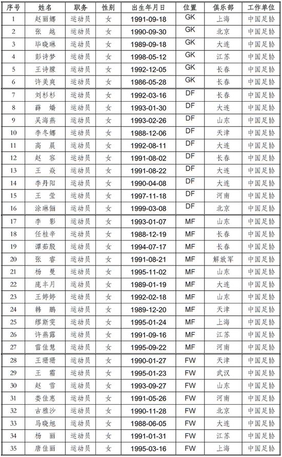 文章关键词:女足足协名单里约征战