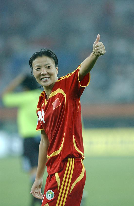 2007年女足世界杯上,中国队对阵挪威队,张欧影。本文图片 视觉中国