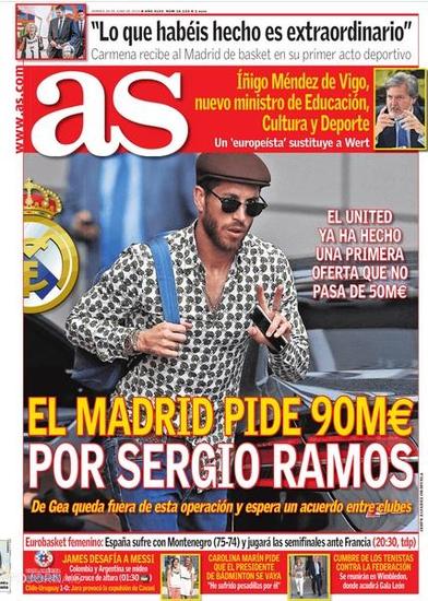 @Rex__Chen:“明天英国每日邮报头条曼联标价德赫亚1亿英镑,想挖?拉莫斯+1000万英镑!”