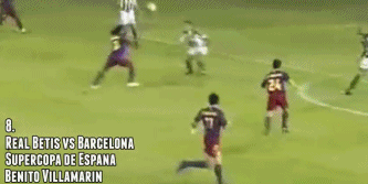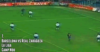 还是西甲联赛,面对毕尔巴鄂的比赛。小罗在边线处遭遇两名对手的夹防,连续的空中挑球过人,将两名防守球员玩弄于鼓掌之间,出色的球感令人咋舌。