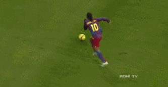 欧冠巴萨对阵切尔西的比赛,小罗将大罗式的钟摆假动作和牛尾巴巧妙的来个了结合。