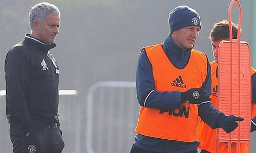 曼联球员今日在卡灵顿基地备战欧联杯客场挑战费内巴切的比赛。根据曼联官网提供的训练照片显示,施魏因斯泰格重新加入了一线队的训练,在穆帅上任后他都是单独训练或者和曼联青年队训练。此前的曼联本赛季全家福中也没有小猪的身影。