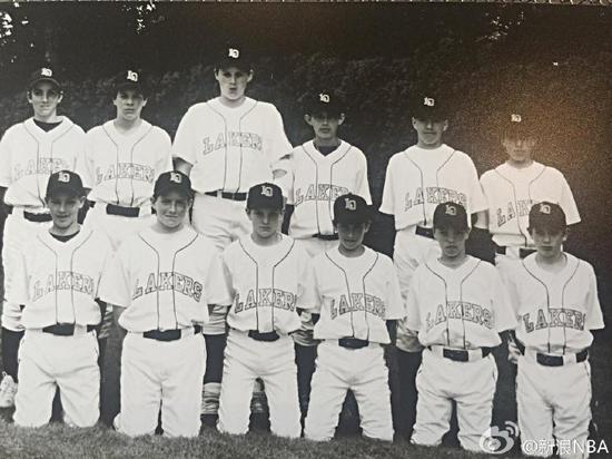左下第一个是克莱-汤普森,第二排最高大的是凯文-勒夫。他们曾经是同一个棒球队的队友,这家俱乐部的名字叫做“Lakers(湖人)”。回忆往昔,两人依旧对对方赞不绝口。