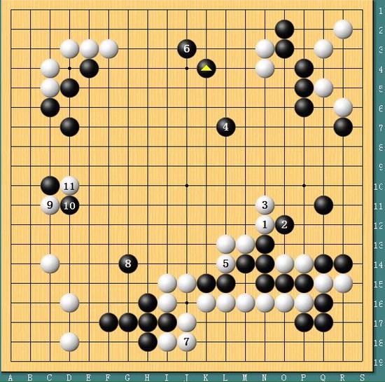 图四,大势已去!实战中李世石根本对下边黑棋无可奈何,仅仅吃回左边2子。但是要知道的是,白棋为了这一波进攻付出了上边的代价,整体算下来李世石亏损太过严重。棋局下到黑棋12位立时,李世石已经大势已去。虽然后半盘李世石顽强地将差距缩小到3点,但和胜负已经毫无关系。