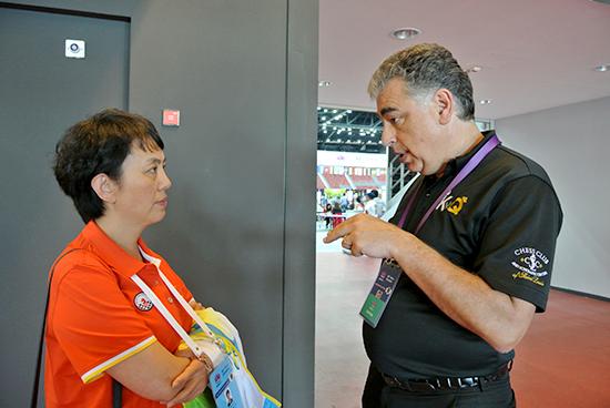 年过五旬的塞拉万曾经获得过全美国际象棋冠军,并且多次代表美国男队参加奥赛。他是个热情洋溢的美国人,风趣幽默,待人真诚,他的热情和笑容很有感染力。塞拉万曾经多次以美国棋王的身份到中国参赛,与中国不少女棋手都很熟悉。