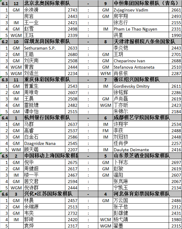 第6轮详细对阵: