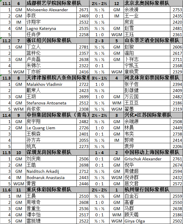第11轮详细赛果如下: