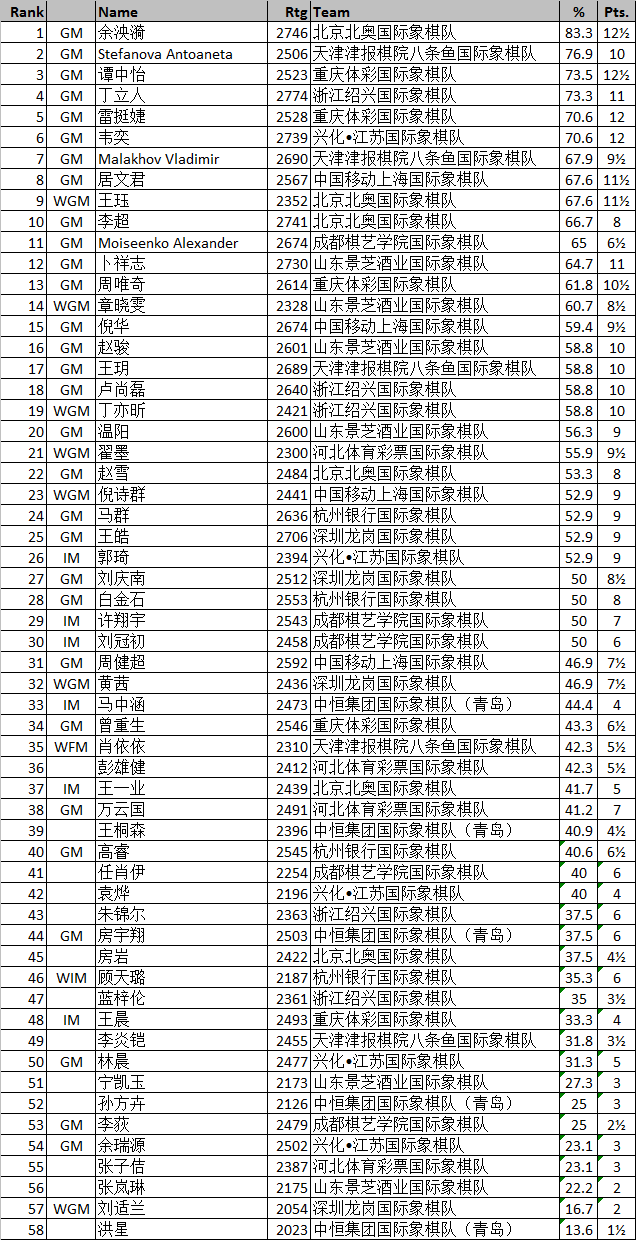 国象甲级联赛17轮后重庆领跑 个人榜余泱漪居首
