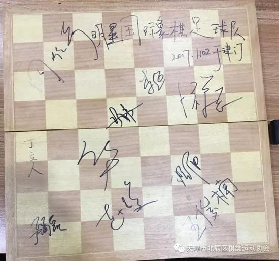 比赛之后,北辰棋类运动协会邀请国际象棋明星队对员签字。