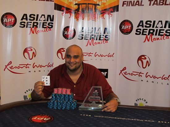 新浪体育讯 北京时间9月21日消息,2012年APT亚洲巡回赛次日比赛昨晚落幕,在KO赏金赛的较量中,来自印度的Sangeeth Mohan在120人中笑到了最后,夺得冠军,还带走了191,900比索的奖金。